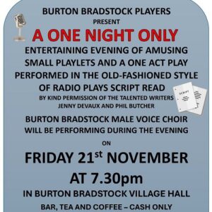 Burton Bradstock Players present A One Night Only (Friday 21 November)