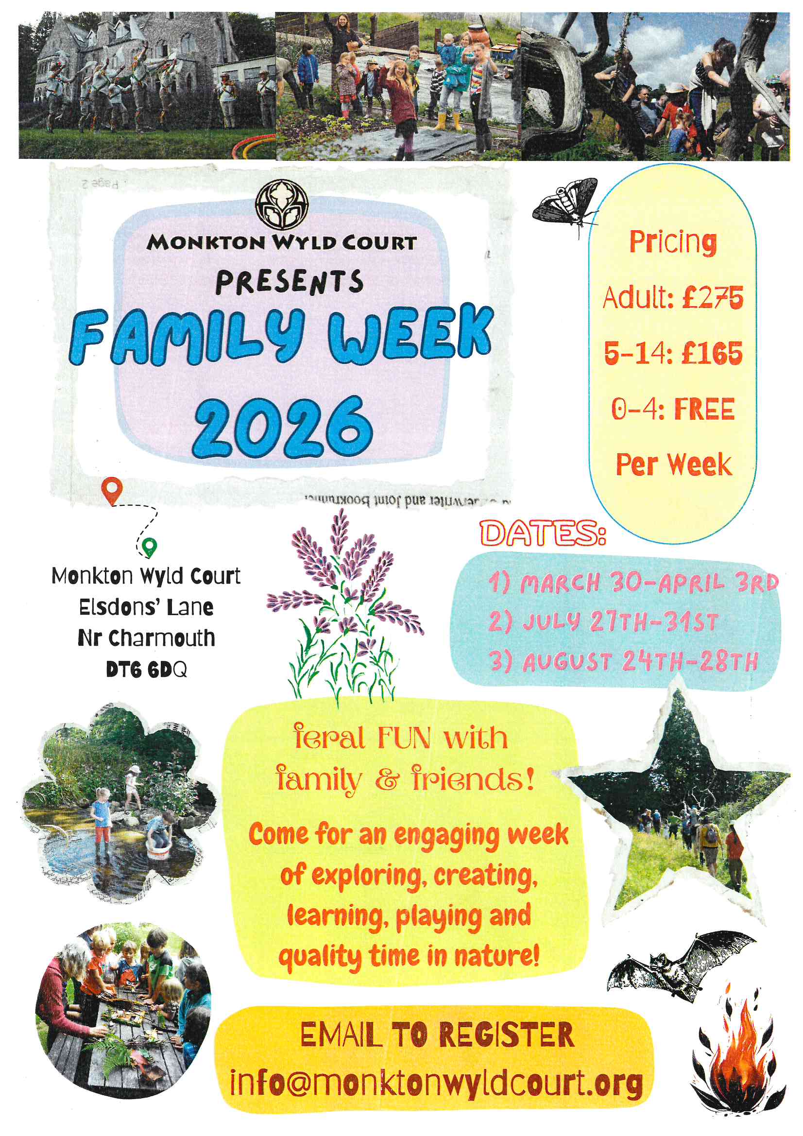info@monktonwyldcourt.org or 01297 560342