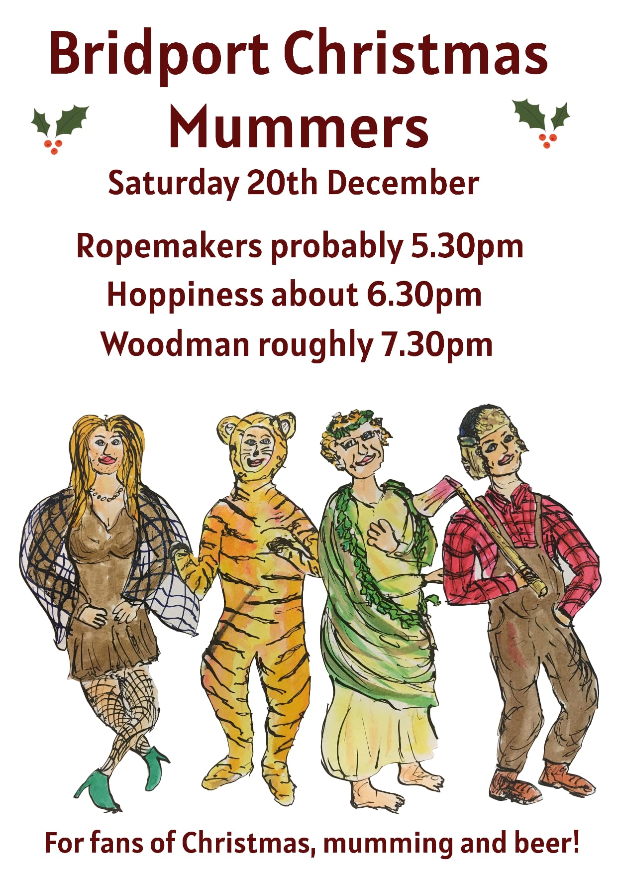 Bridport Mummers are a folk theatre group, founded in 2017 by writer and storyteller, Martin Maudsley. Inspired by traditional mummers plays, they perform original works celebrating the seasons and local life.