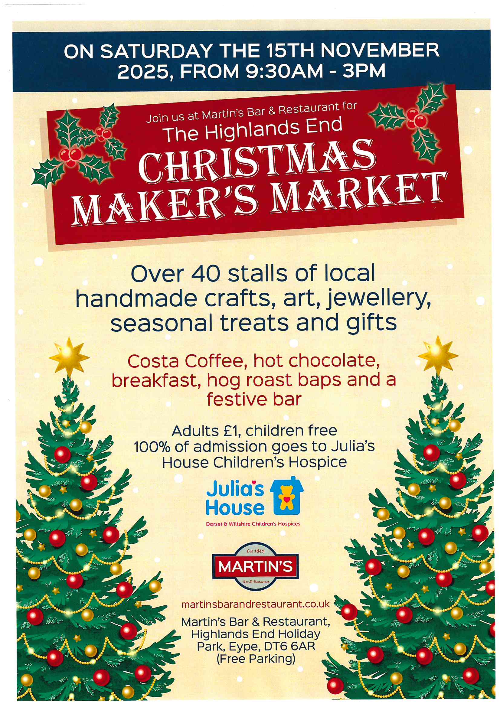 The annual Maker’s Market held here at Martin’s Bar & Restaurant and formerly known as the Eype Maker’s Market, is back! There will be lots of stalls
