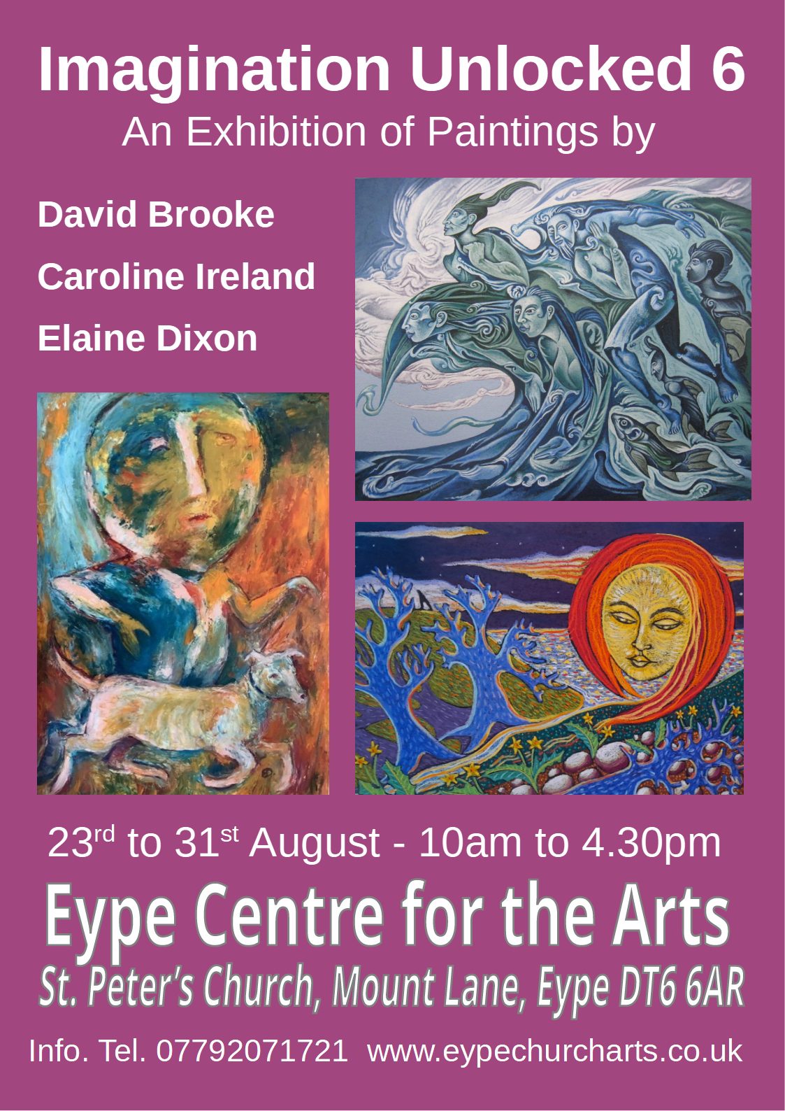 An exhibition of artwork by Bridport-based artists, David Brooke & Caroline Ireland, and guest artist Elaine Dixon, all of whom make interesting work from the imagination, but in very different