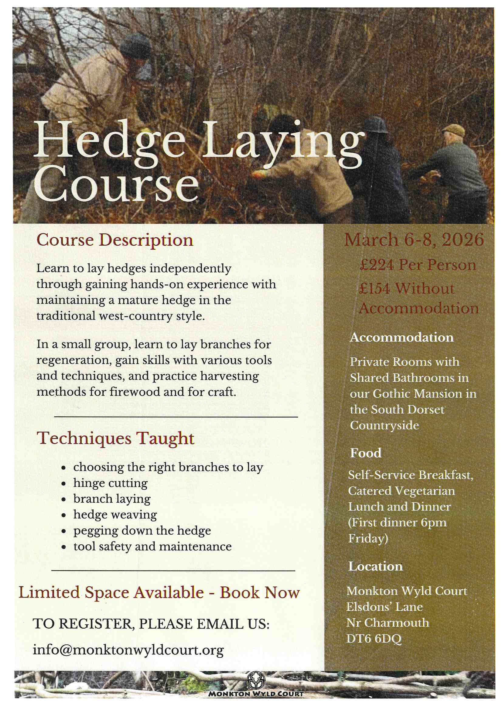 Please get in touch at info@monktonwyldcourt.org or by calling us on 01297 560342 to ask any questions or to book a place.