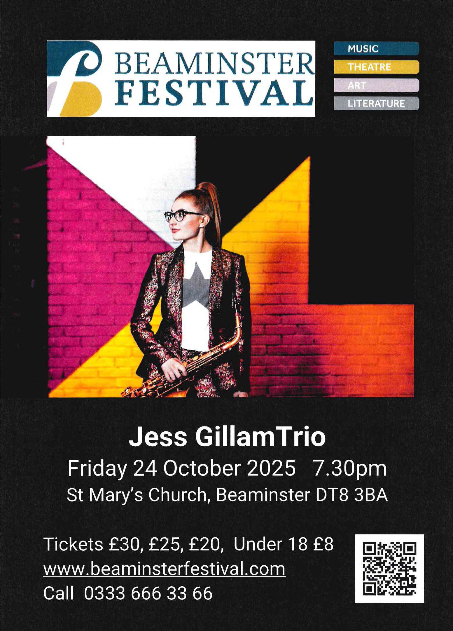 Jess Gillam has become an international star, having been a finalist in the 2016 BBC Young Musician. She appeared at the Beaminster Festival in 2017 and has gone on to perform all over the world and is also a highly successful and popular presenter. She has her own show on BBC Radio 3, ‘This Classical Life’ and has presented BBC Proms and BBC Young Musician. She is a brilliant communicator and is excited to play ‘in the round’ at St Mary’s Church, ensuring close contact with the whole audience.