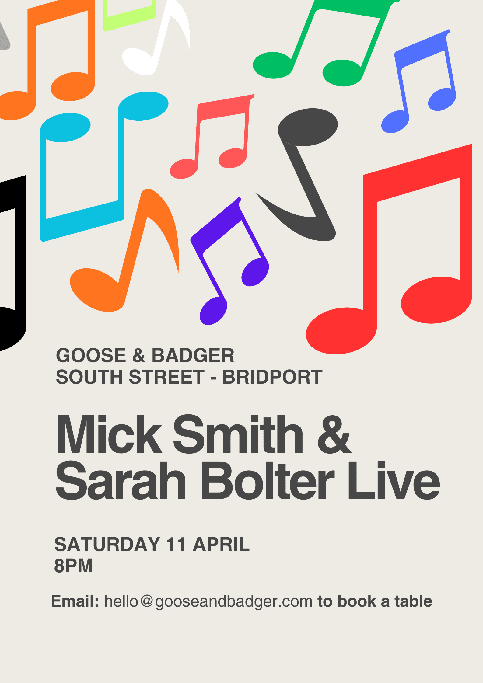 Goose and Badger welcome Sarah Bolter and Mick Smith to our café bar! Sarah Bolter: Saxophone, clarinet, flute, vocals Mick Smith: Piano Pop in or email