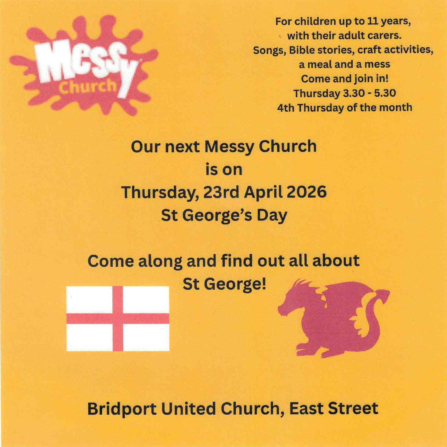 Songs, Bible stories, craft activities, a meal and a mess! Free for children up to 11 years of age, accompanied by parent/carer SUNDAY 23 APRIL: