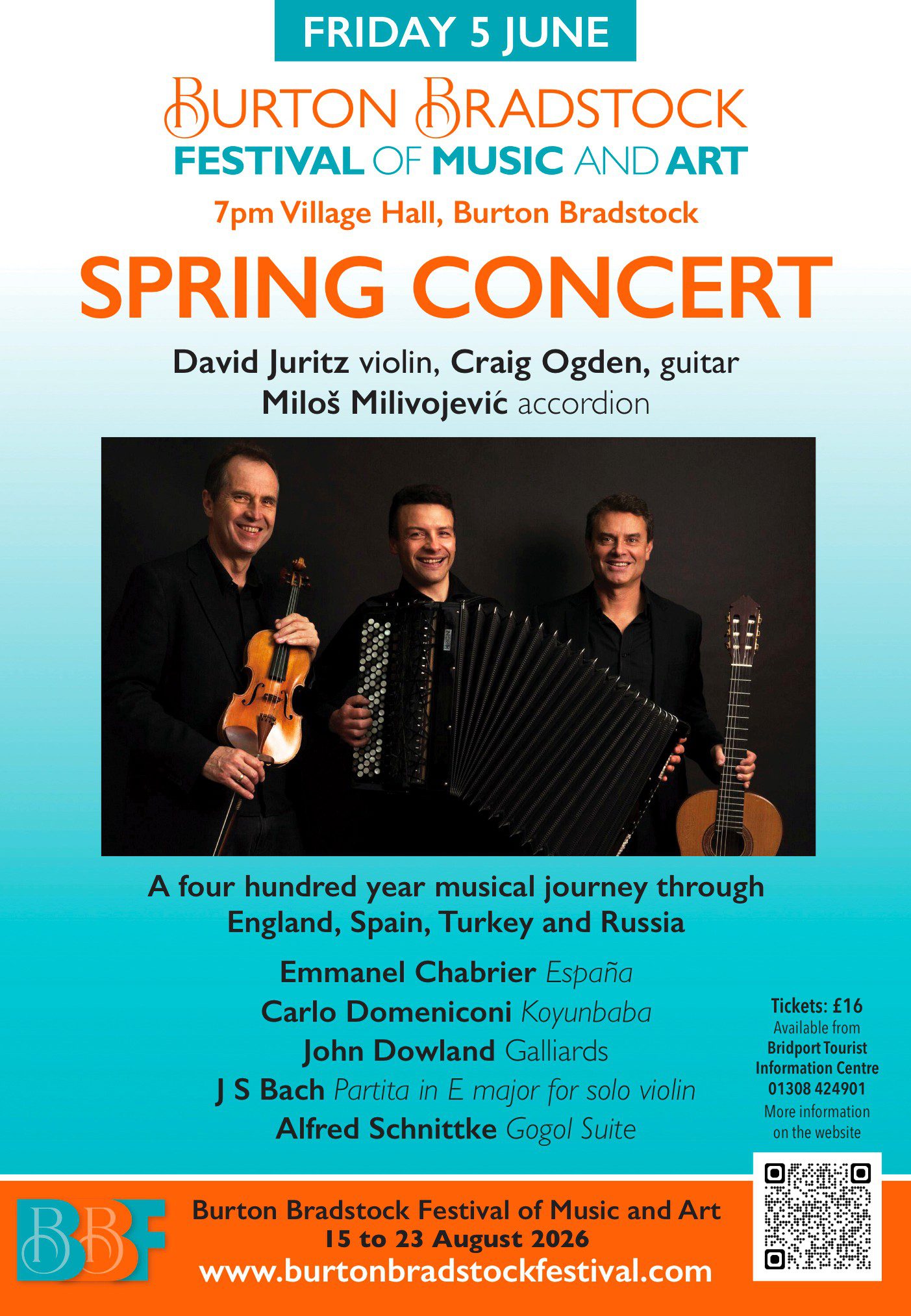 David Juritz, Craig Ogden and Miloš Milivojevic play Bach, Dowland, Chabrier, Satie and Schnittke in an evening of light-hearted, serious, and even ridiculous, music for violin, guitar and accordion.
