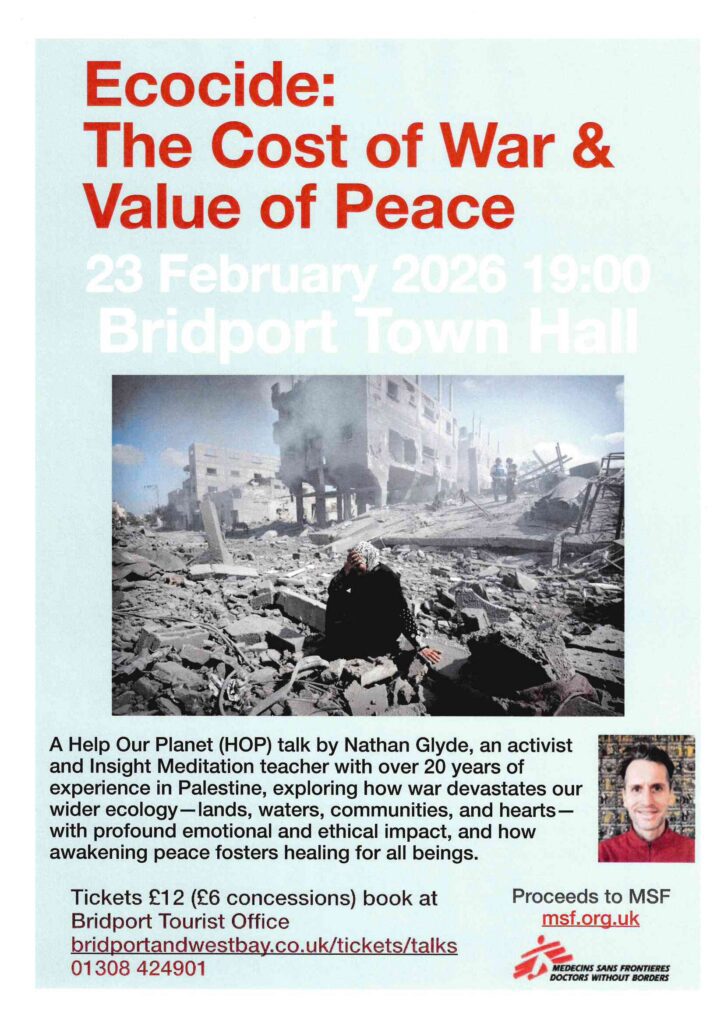 A talk by Nathan Glyde, an activist and Insight Meditation teacher with over 20 years of experience in Palestine, exploring how war devastates our wider ecology – lands, waters, communities, and hearts – with profound emotional and ethical impact, and how awakening peace fosters healing for all beings. Proceeds to MSF
