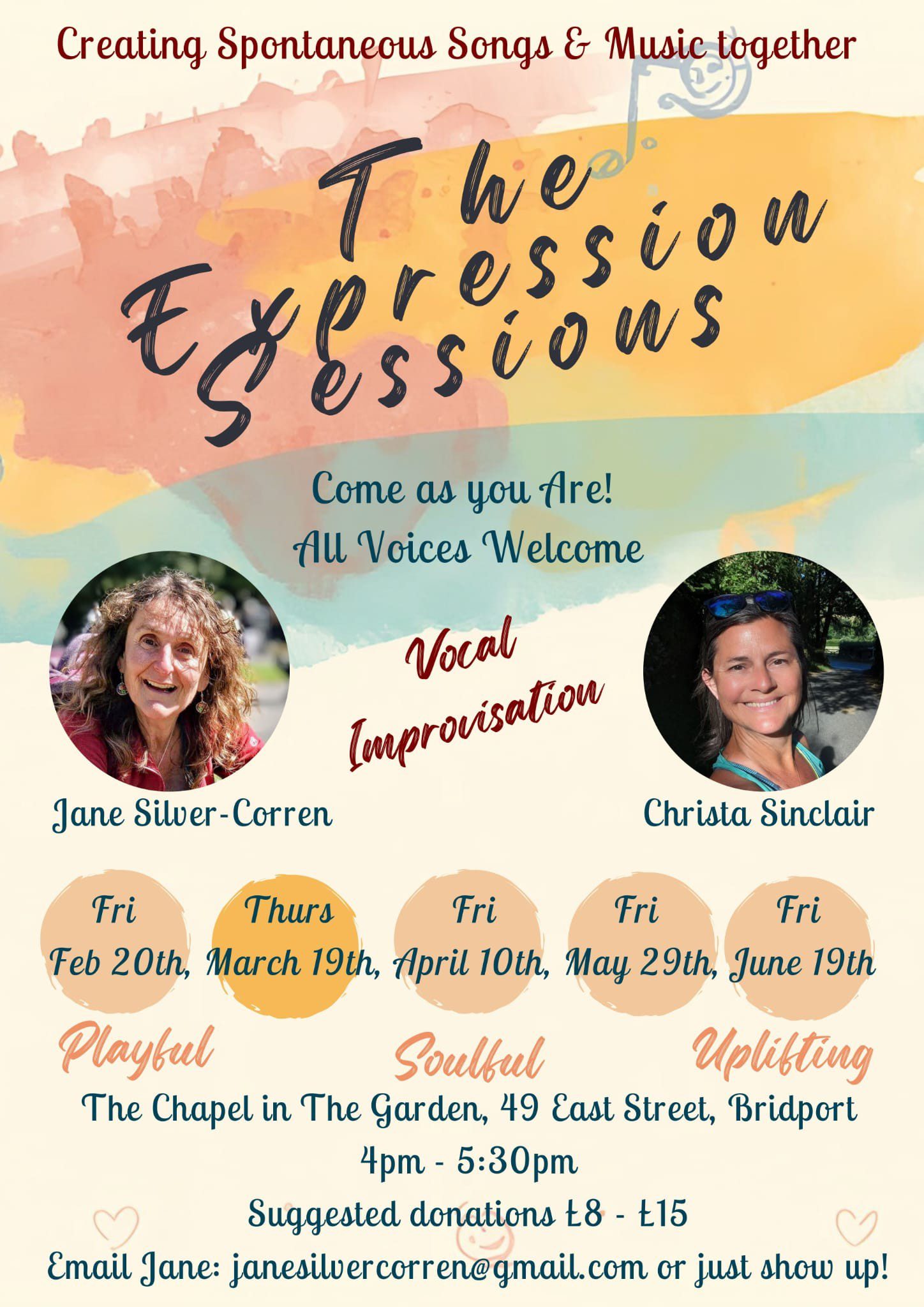 Email: janesilvercorren@gmail.com or just show up!